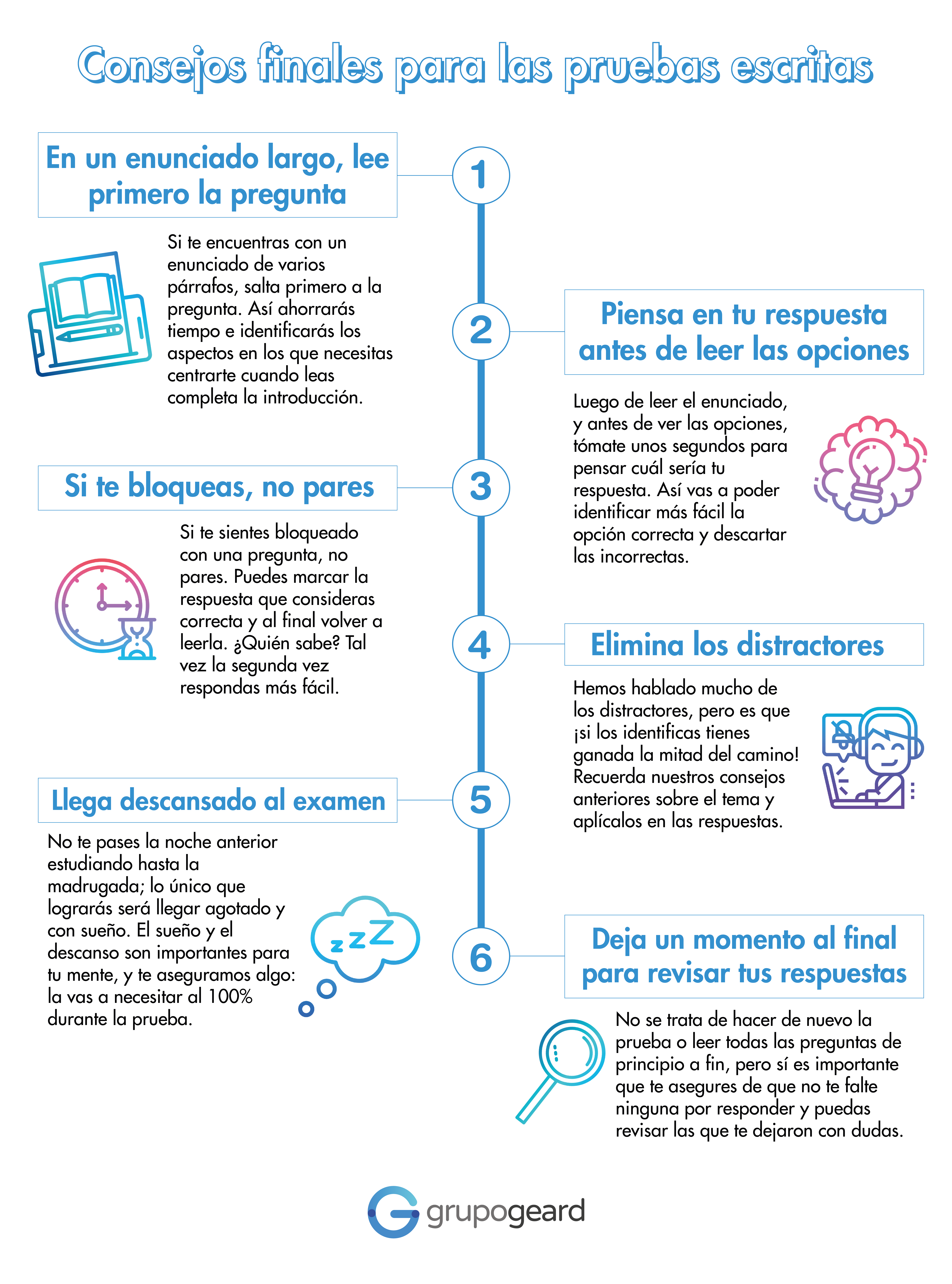 Esperamos estos consejos te sean muy útiles y te deseamos muchísimos éxitos en las pruebas escritas.💙 Recuerda que el éxito es la suma de los pequeños esfuerzos que realizas cada día.