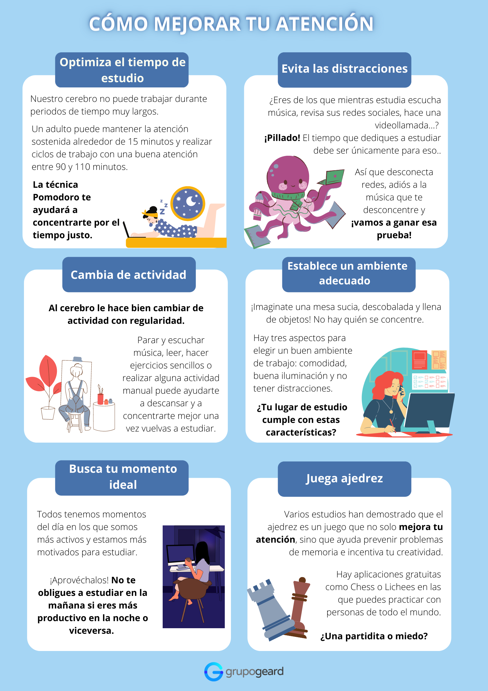 La Maratón de estudio DIAN no para y menos cuando faltan tan pocos días para la prueba. En esta ocasión te traemos varios consejos sobre cómo mejorar tu atención. Desarrollar la capacidad de dirigir y mantener un estado de concentración para el procesamiento de la información es fundamental para ganar las pruebas de la Convocatoria DIAN.