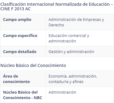 Como lo ilustra esta imagen tomada directamente del SNIES (Sistema de Información de la Educación Superior), la carrera de Administración de empresas, hace parte de un núcleo básico del conocimiento llamado Administración y del área de conocimiento llamada Economía, administración, contaduría y afines.