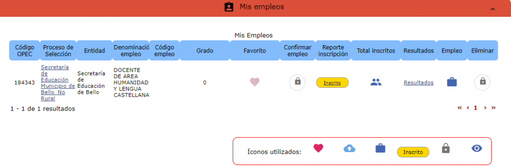 Y lo siguiente que debes hacer es dar clic en el nombre de la vacante para ingresar y ver el estado de las etapas que se encuentran en desarrollo dentro de la convocatoria, al darle clic vas a ver algo como en la siguiente imagen.