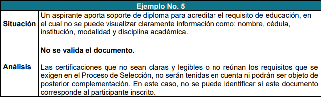 En este apartado encontraremos unos ejemplos sobre la forma en que se evalúan los datos y documentos aportados.