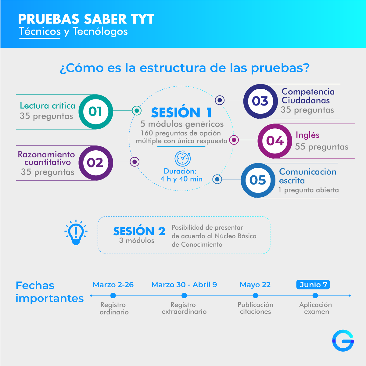 1. La primera es una evaluación de competencias genéricas, es decir, pruebas que desarrollan todos los estudiantes sin distinción de su área de formación. Esta sesión tiene 5 módulos: