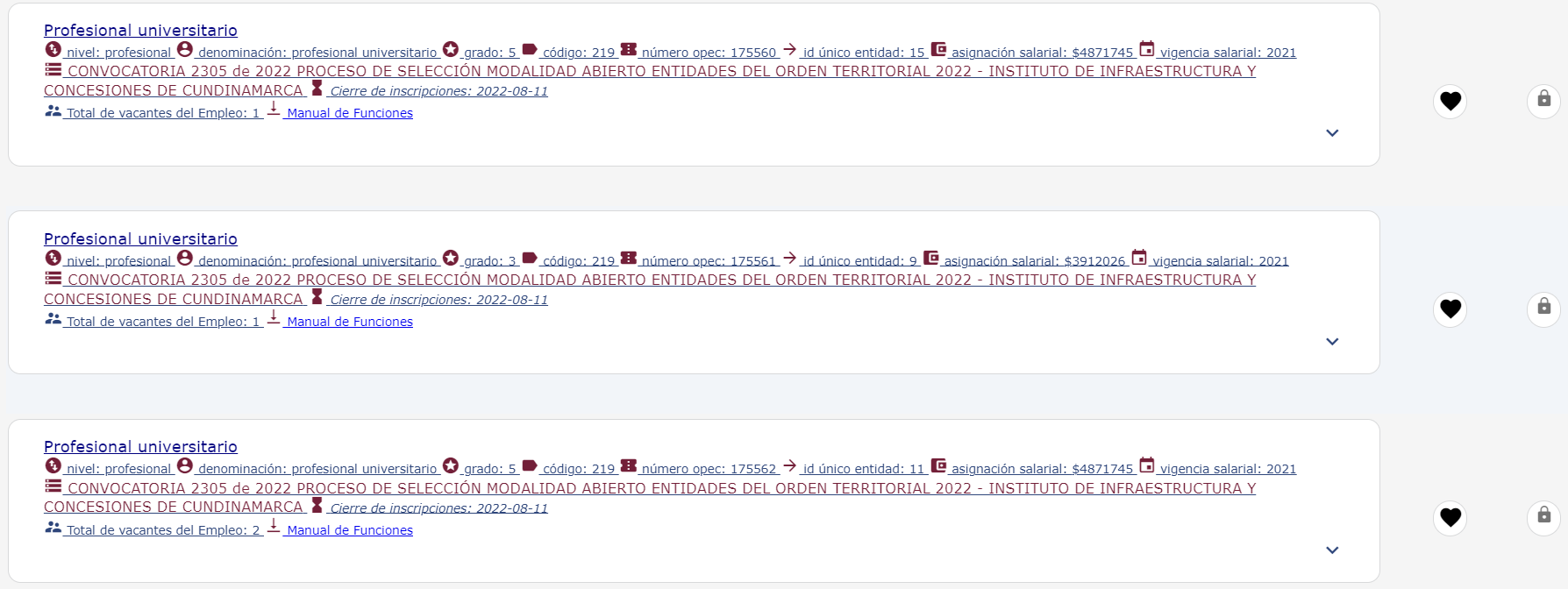 En esta sección podrás realizar tu búsqueda filtrando por proceso de selección, nivel jerárquico, ciudad, departamento, entre otros. Luego de realizar esto, en la parte inferior podrás encontrar todas las OPEC que están disponibles.